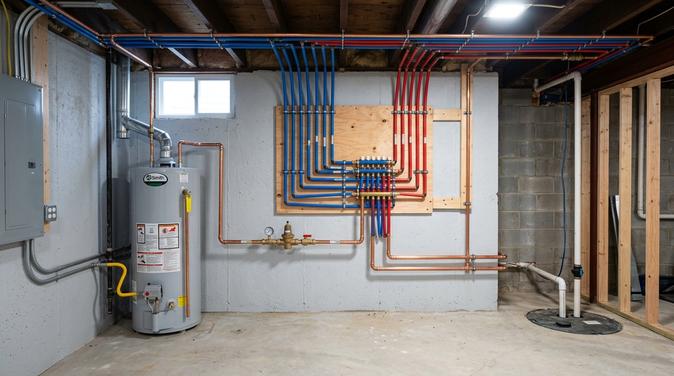 Emergency pipe repair and full-home repiping by licensed Windsor plumbers. We repair leaks, replace corroded sections, and perform whole-home repipes in copper or PEX. Proper permits pulled for all repiping work.